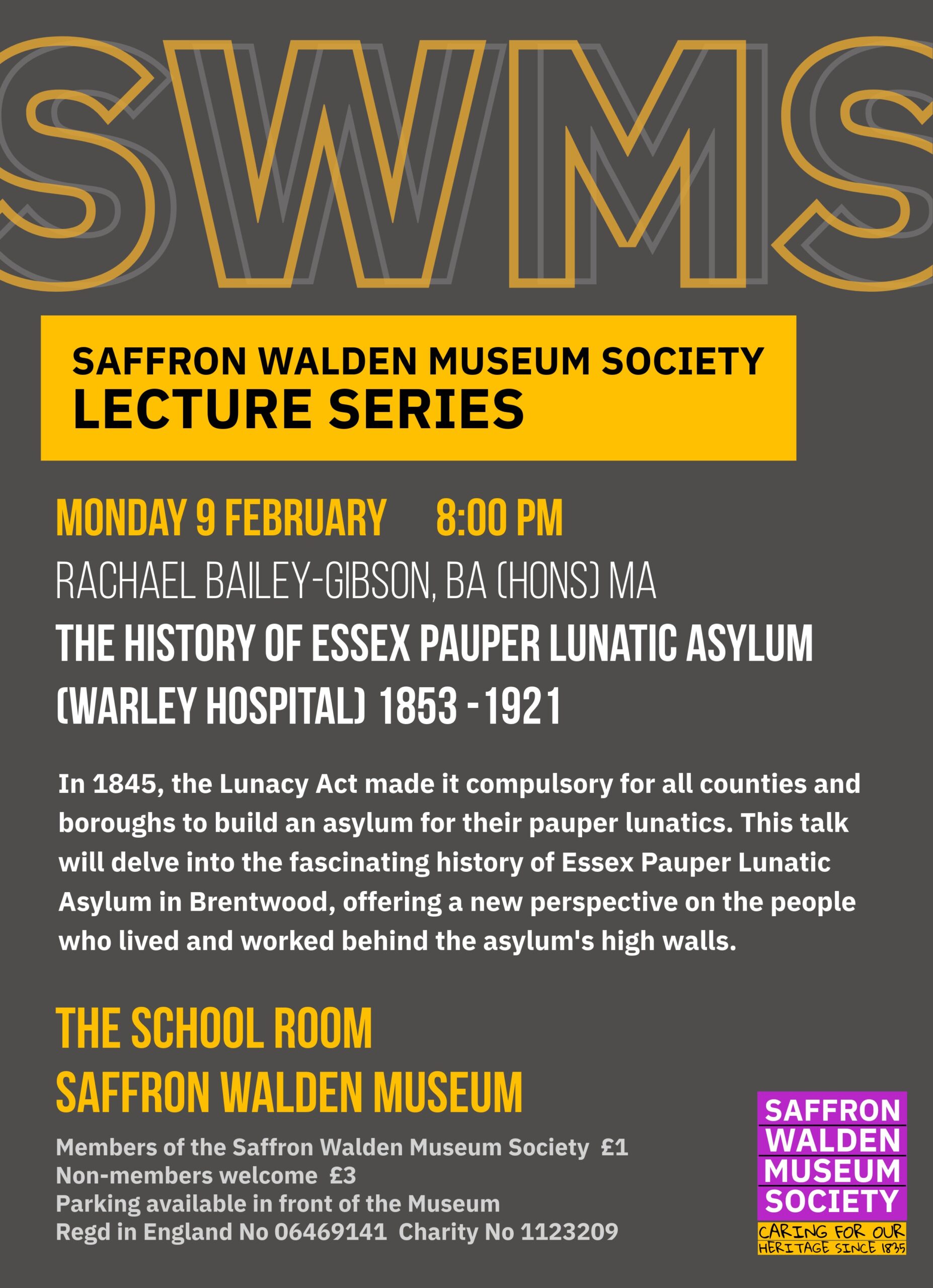 In 1845, the Lunacy Act made it compulsory for all counties and boroughs that had not already done so, like Essex, to build an asylum for their pauper lunatics. This talk will delve into the fascinating history of Essex Pauper Lunatic Asylum, which later became Brentwood Mental Hospital and then, Warley Hospital. It will focus on the alienists/psychiatrists who worked at the asylum as well as their staff, families and patients. This talk may dispel some myths and even offer a new perspective on the people who lived and worked behind the asylums’ high walls.